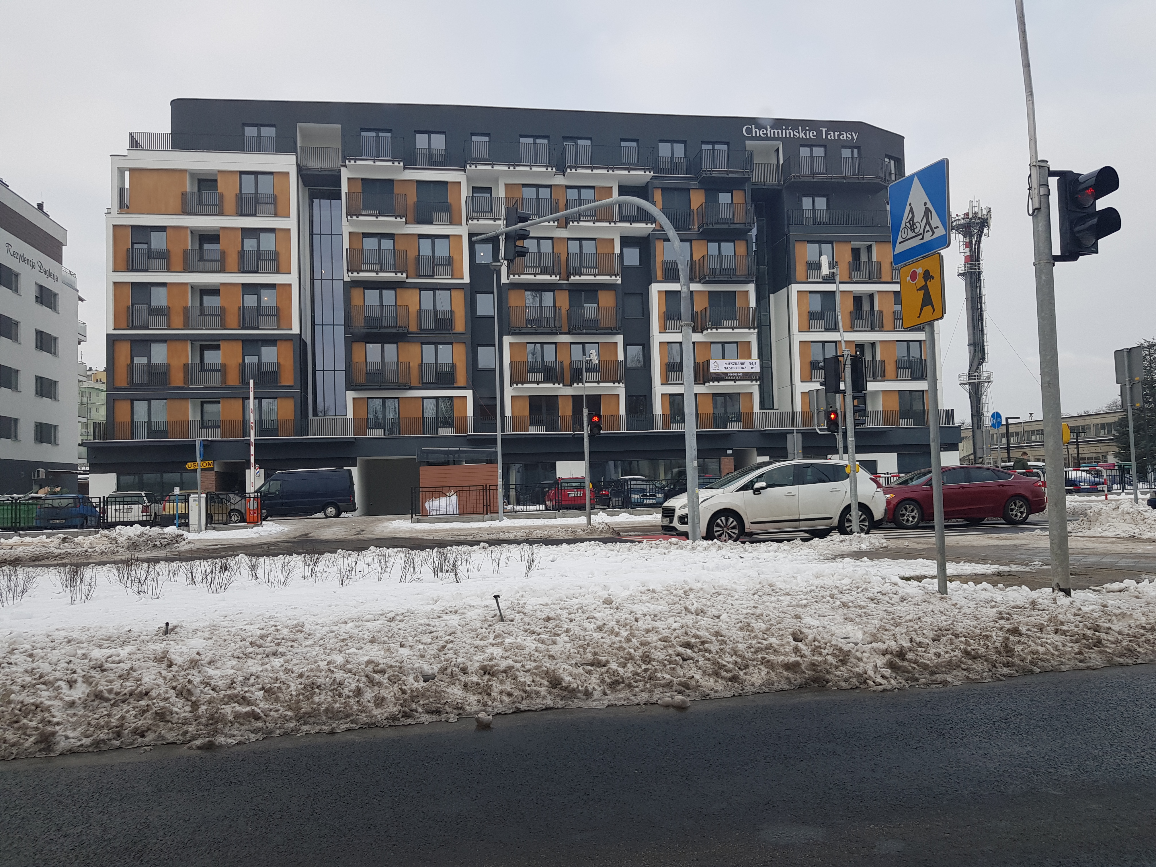 Chełmińskie Tarasy" to budynek 6-cio piętrowy, o modernistycznej architekturze, położony w centrum miasta, przy modernizowanej ulicy Szosa Chełmińska. Wyposażony w nowoczesne windy, podziemne miejsca parkingowe, komórki lokatorskie i starannie wykończone klatki schodowe. W budynku znajduje się 60 mieszkań o zróżnicowanych powierzchniach, od 34 do 108 m2 wyposażonych w przestronne balkony i tarasy oraz 5 lokali usługowych na parterze. Inwestycja wykonywana jest z materiałów budowlanych najwyższej jakości, które zapewniają przyszłym mieszkańcom komfort użytkowania. Inwestycja Chełmińskie Tarasy…Lokale w budynku